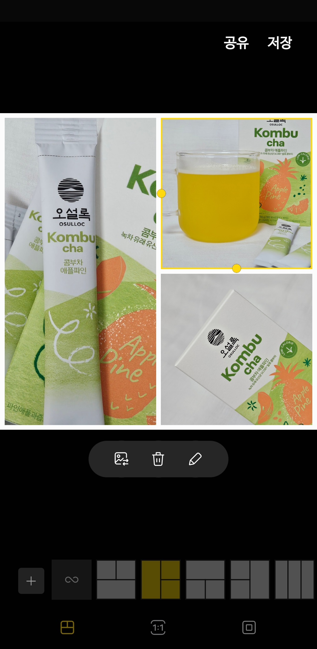 3) 아래쪽 가운데의 [콜라주] 버튼을 누릅니다.