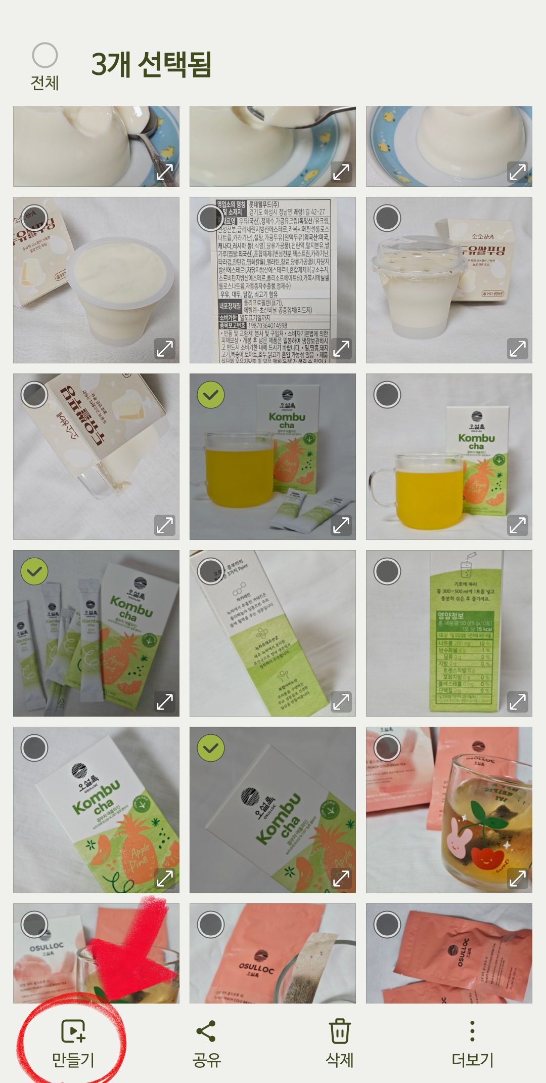 1) 갤러리에서 합칠 사진을 선택합니다.