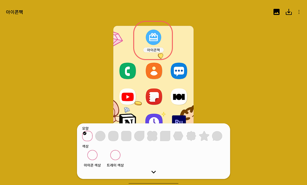 테마파크에서는 아이콘의 기본 모양과 색상을 변경할 수 있습니다. 더 나아가 다른 스타일의 아이콘을 적용하고 싶다면 아이콘팩을 따로 다운받아 적용할 수 있습니다. 구글 플레이스토어에서 [아이콘팩]을 검색하면 다양한 종류의 아이콘팩이 나오니 둘러보고 다운로드 받아보세요. 다운로드 후 테마파크에서 적용을 하면 간편하게 아이콘 스타일을 변경할 수 있습니다.