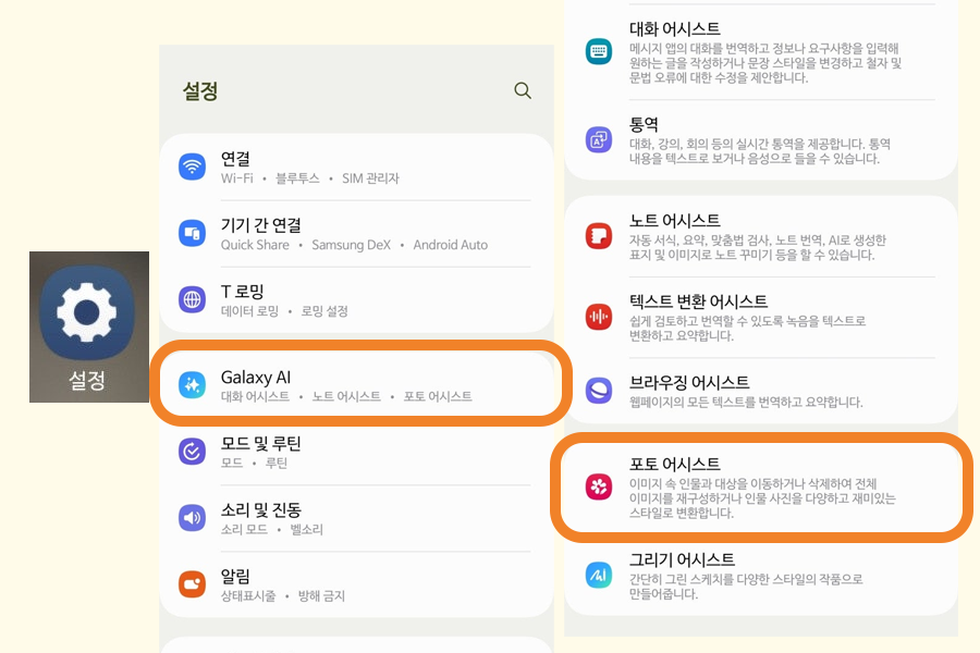 [설정] - [Galaxy AI] - [포토 어시스트] - [사용 중] 활성화